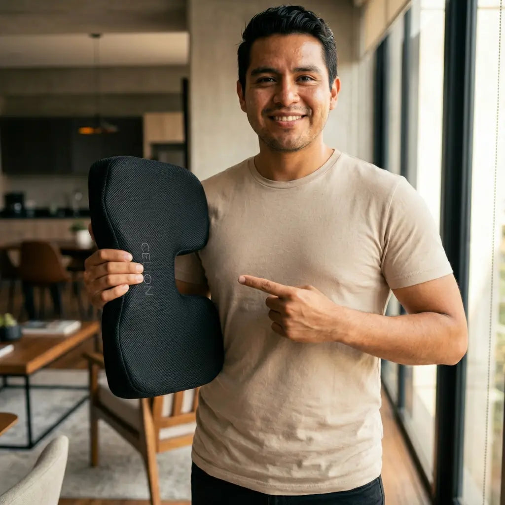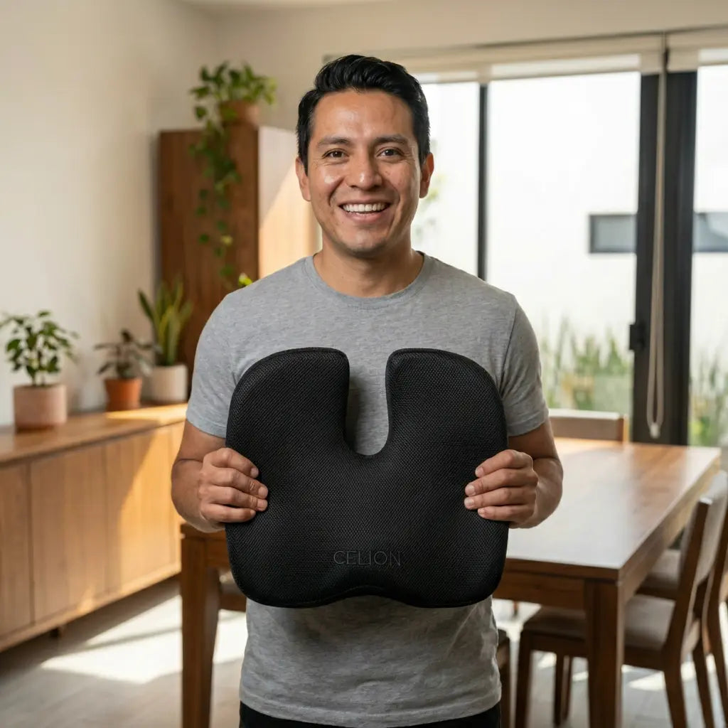 No todos los cojines alivian el dolor de la misma forma. Celion fue diseñado para quienes pasan horas sentados, especialmente en el carro, y necesitan alivio real en glúteos y zona lumbar.